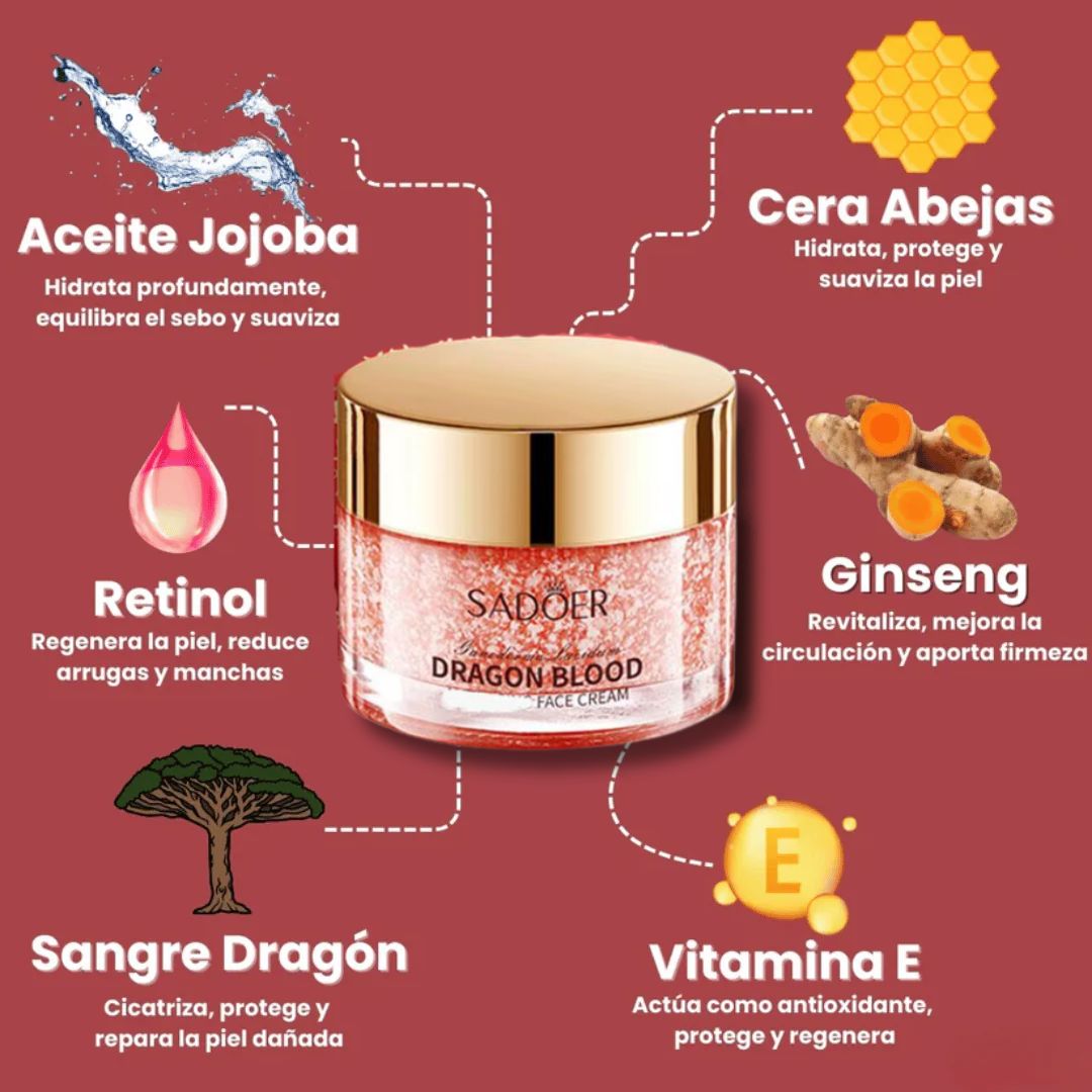 La crema facial Dragon Blood™, está revolucionando el cuidado de la piel con su poderosa fórmula de Sangre de Dragón, Retinol y Ácido Hialurónico. Inspirada en la cosmética coreana, hidrata en profundidad y ayuda a mejorar la apariencia de la piel, dejándola más fresca y luminosa.